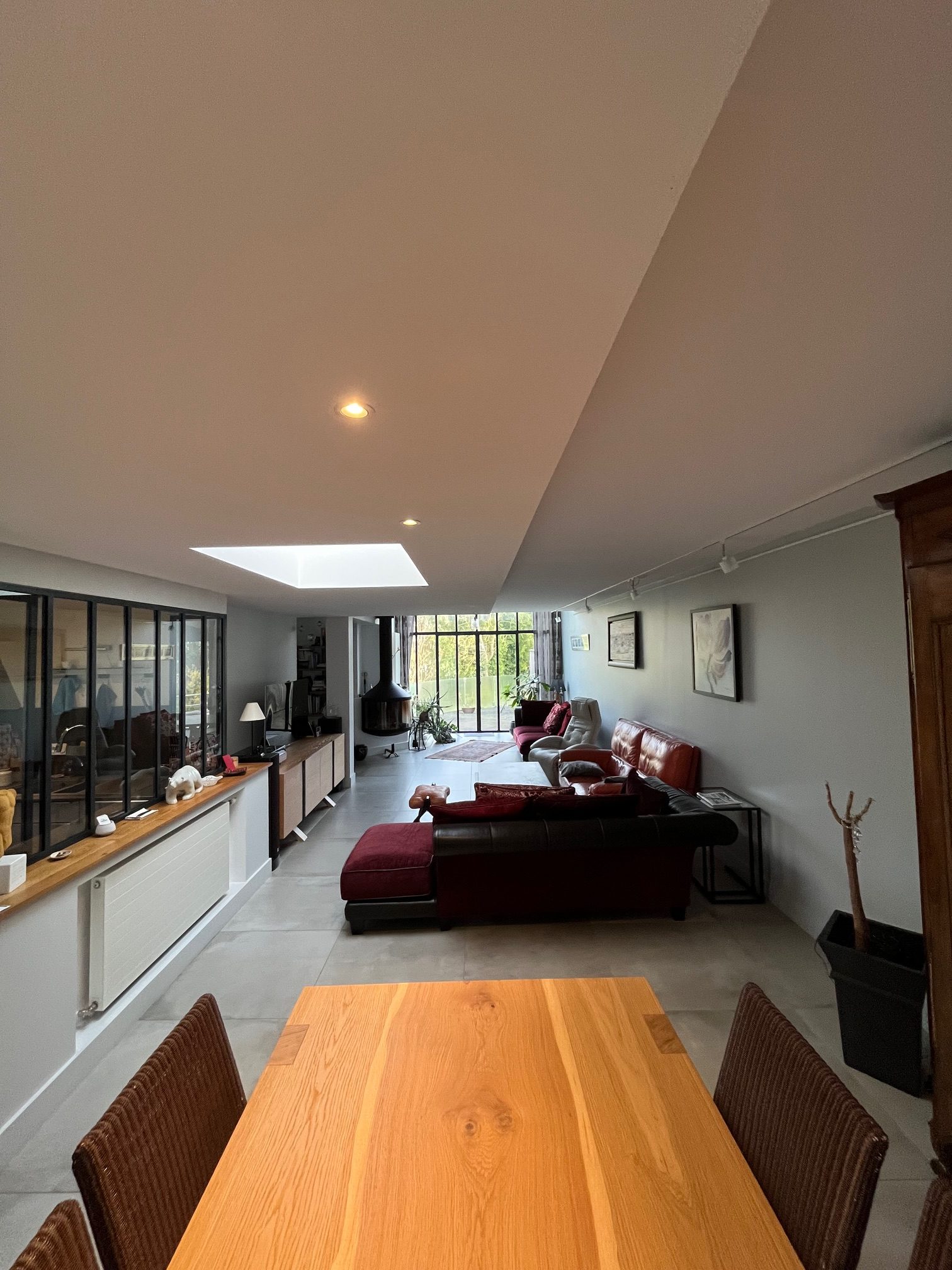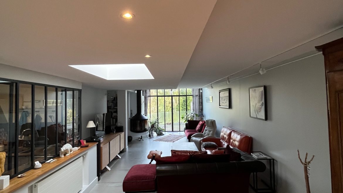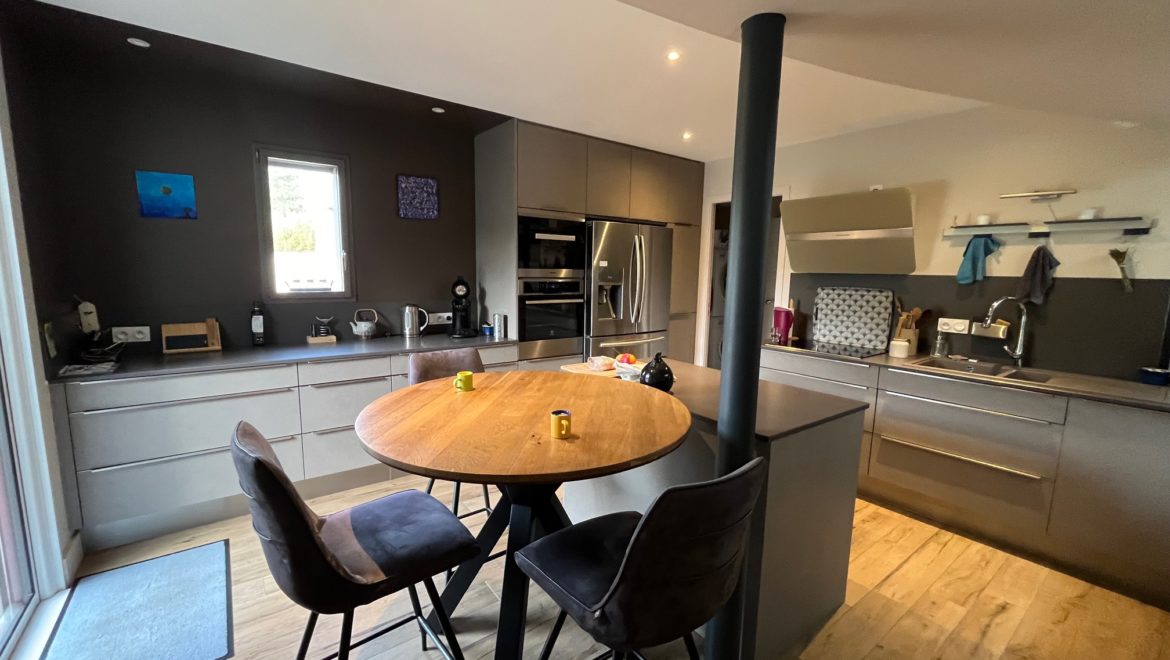 Comprenant une vaste entrée avec office, une cuisine équipée et aménagée semi-ouverte sur le salon séjour de 67 m² avec son poêle suspendu. Un dégagement desservant une suite parentale avec dressing et salle d’eau privative. Un bureau, une arrière-cuisine et WC.