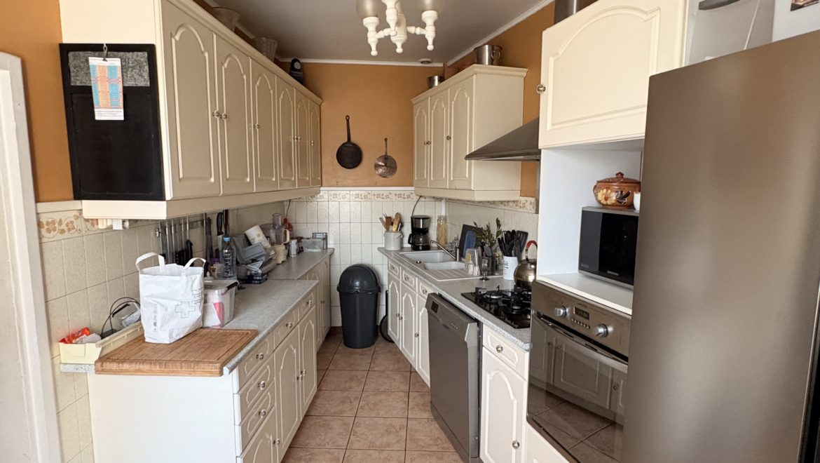 La cuisine, équipée et aménagée, est à la fois pratique et conviviale. Une salle d’eau avec douche ainsi qu’un WC séparé complètent ce niveau.