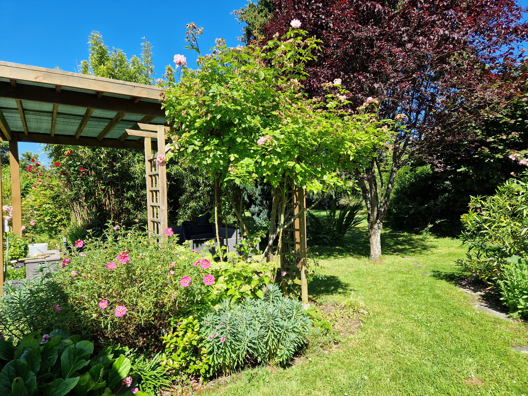 À l’extérieur, le bien révèle tout son potentiel : un parc arboré et soigneusement entretenu de 1700m², sans vis-à-vis, véritable havre de paix, une véranda de stockage neuve ainsi que deux pergolas permettant de profiter pleinement des extérieurs.