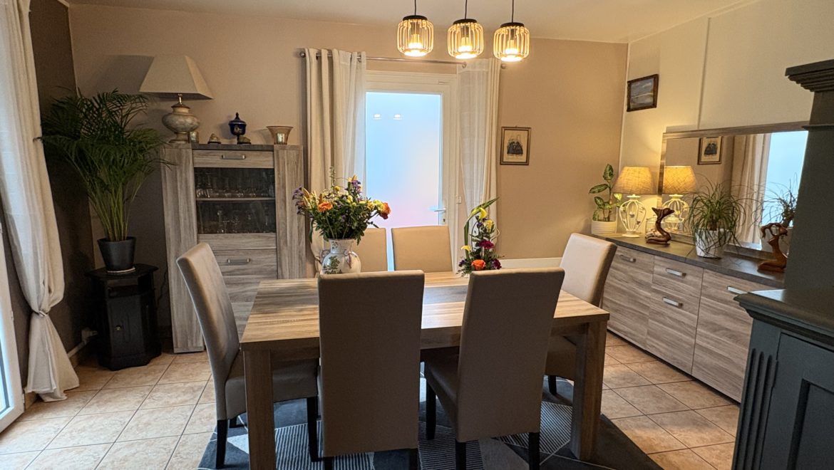Dans un environnement calme et verdoyant, à seulement deux minutes des services, cette maison de 115 m² offre un cadre de vie agréable et serein.