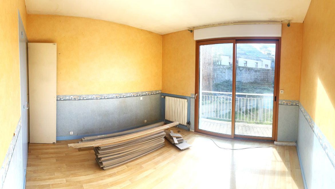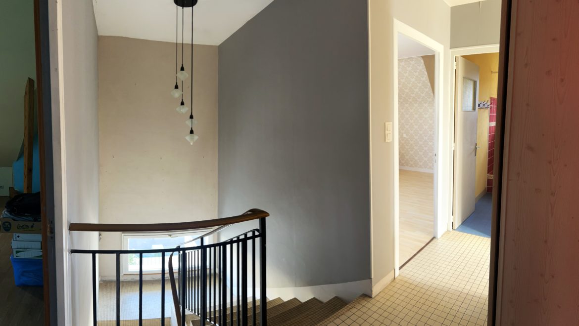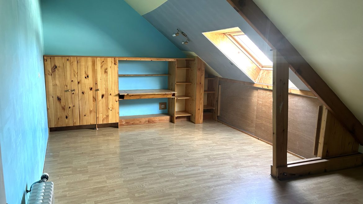 Un dégagement desservant une grande chambre d’environ 15 m², un bureau, une salle de bain, et un WC indépendant avec point d’eau.