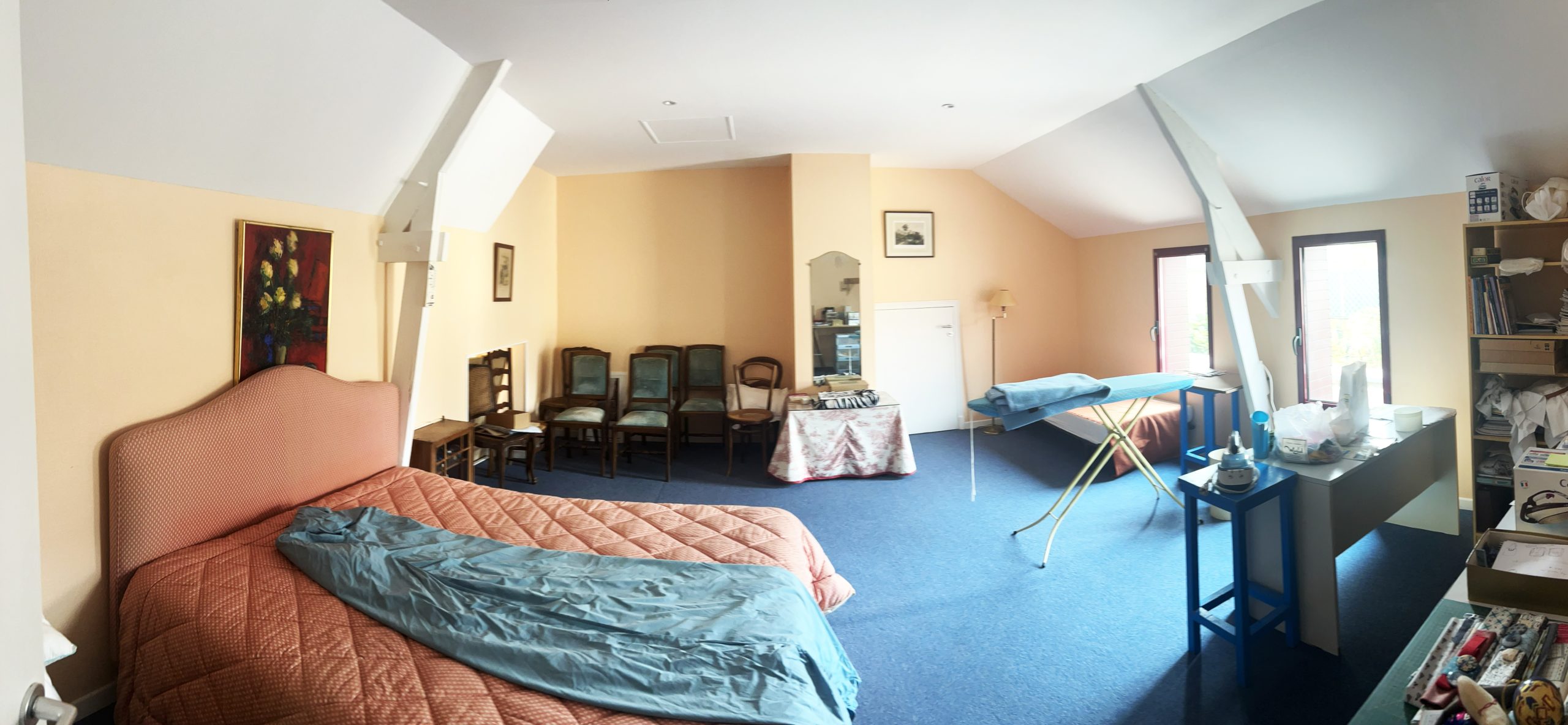 - À l’étage : une mezzanine avec coin bureau, un grenier de rangement et une grande chambre de 30 m², avec accès à un vaste grenier aménageable.