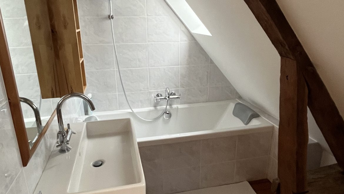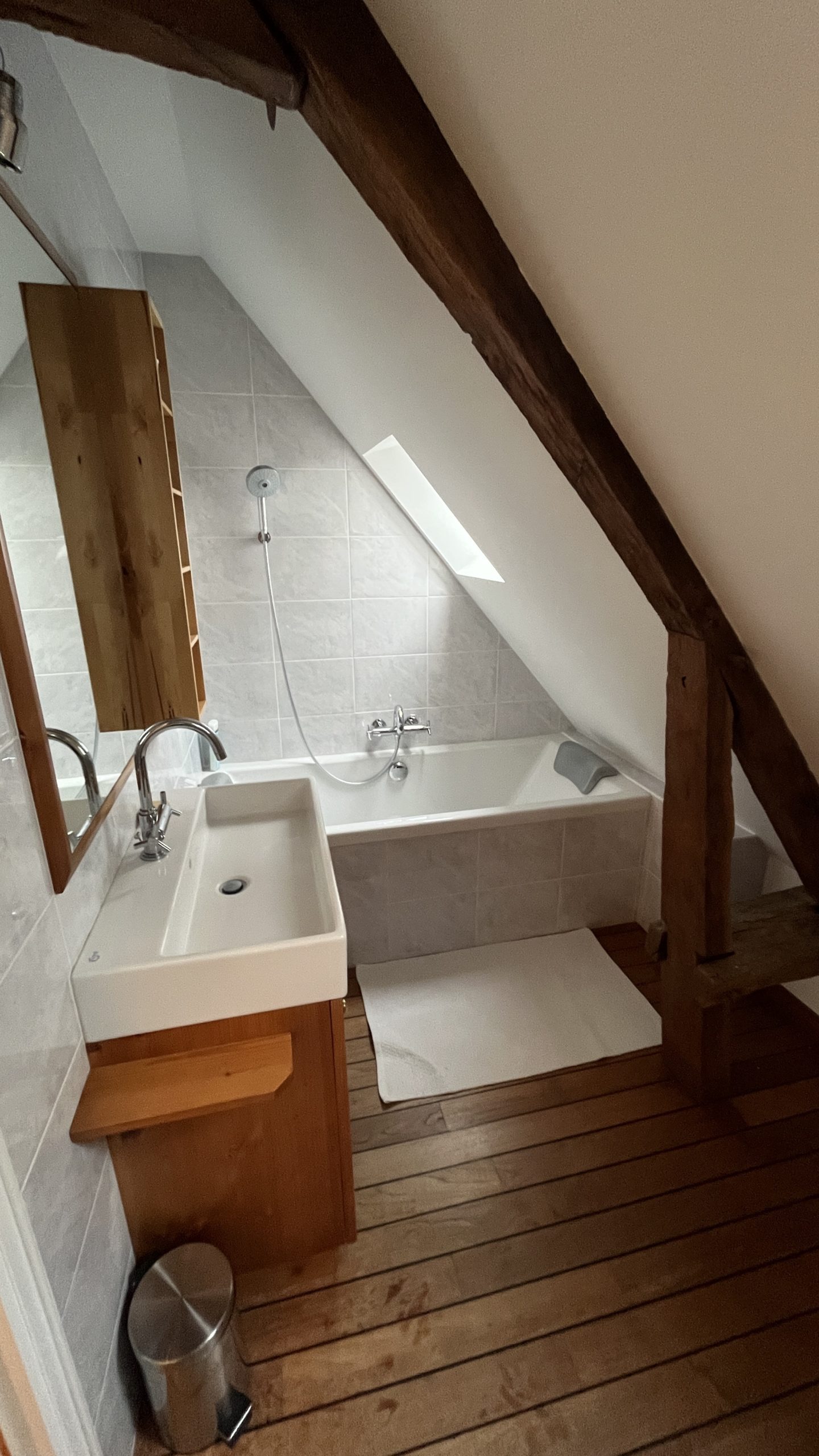 À quelques pas du manoir, la longère rénovée propose une ambiance différente, mêlant confort et authenticité.